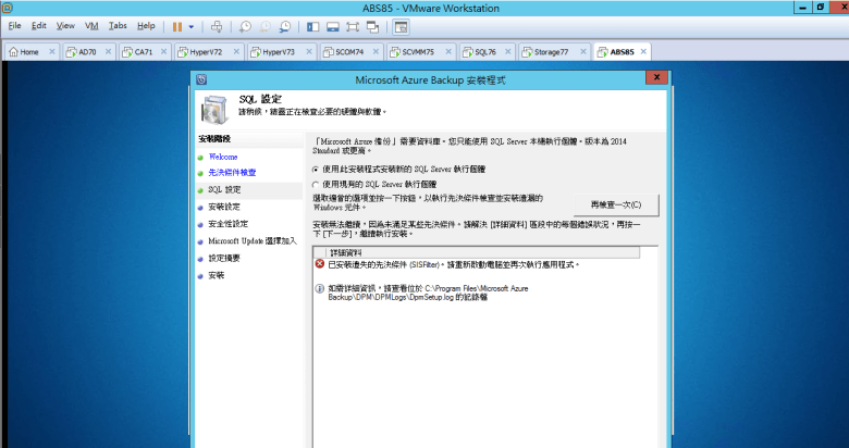 [ 注意 無法在執行為 “網域控制站的機器上" 安裝 Azure 備份伺服器 ]