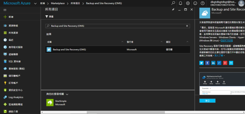 點選 Backup and Site Recovery (OMS)