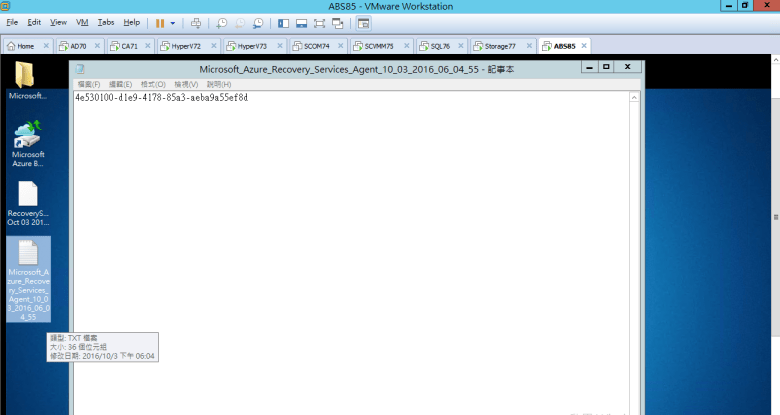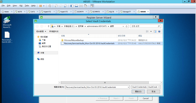 確認 RecoveryServicesVaults_Mon Oct 03 2016.VaultCredentials (已放置)