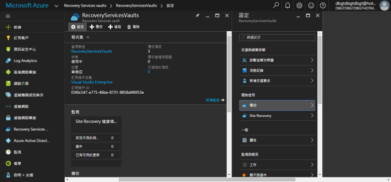 點選 Recovery Services … (服務)