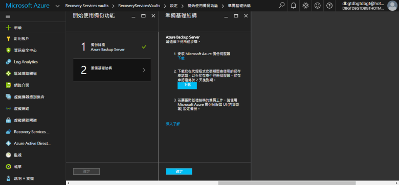 [ Ps.點選 說明 https://azure.microsoft.com/zh-tw/documentation/articles/backup-azure-microsoft-azure-backup/ ]