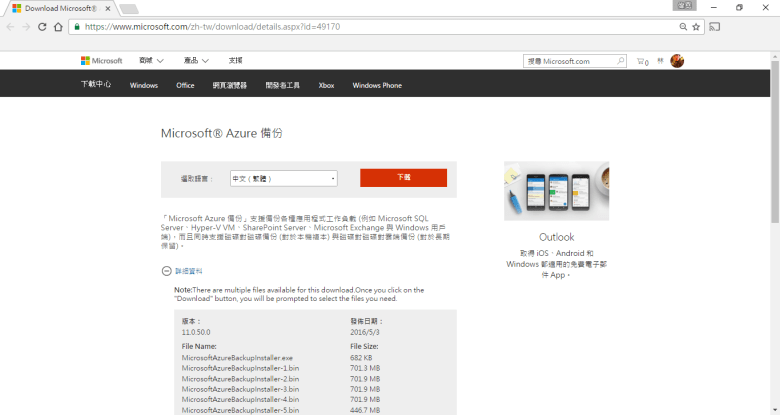 [ Ps. 檔案名稱 MicrosoftAzureBackupInstaller (總容量大小 3.2 GB) ]