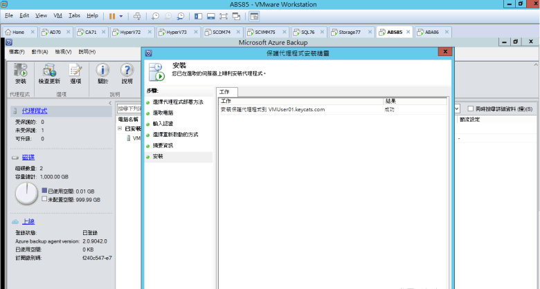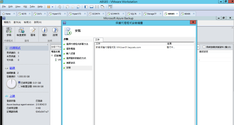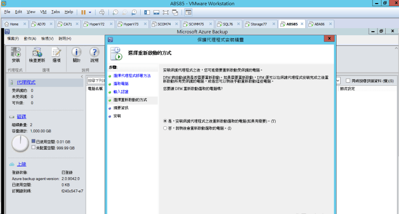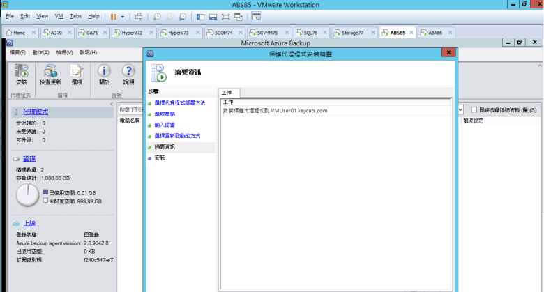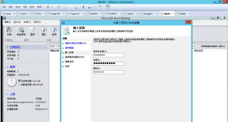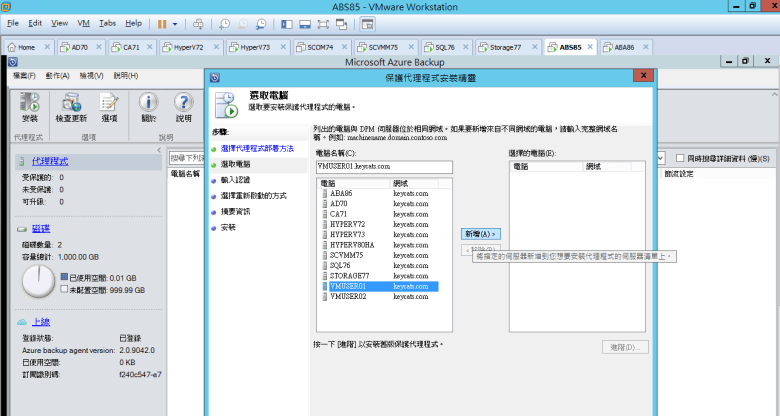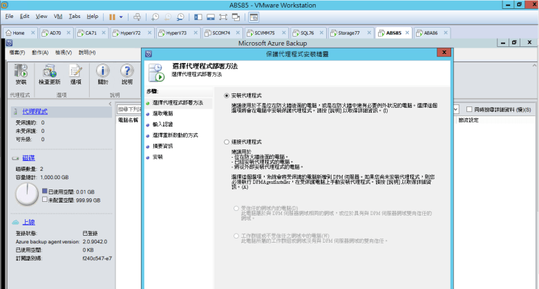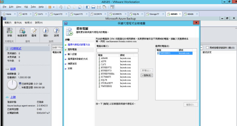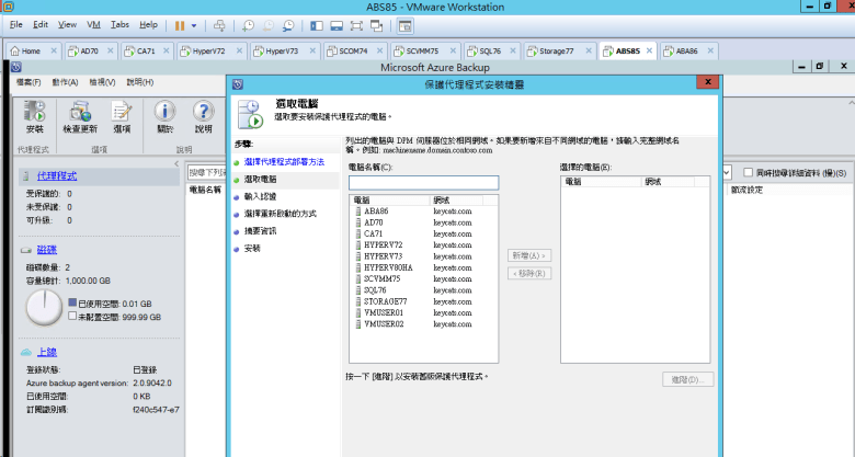 設定 Microsoft Azure Backup Server (部署 Agent 至 需備份的伺服器 和 主機)