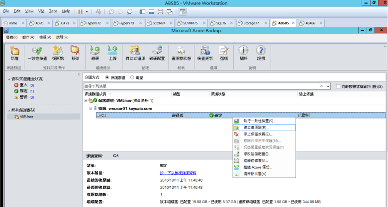 點選 VMUser01 (所有受保護的磁碟區)