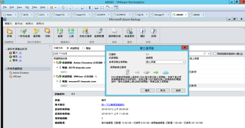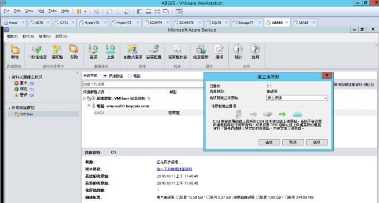 設定 Microsoft Azure Backup Server (介紹 線上保護 和 磁碟 的復原點)