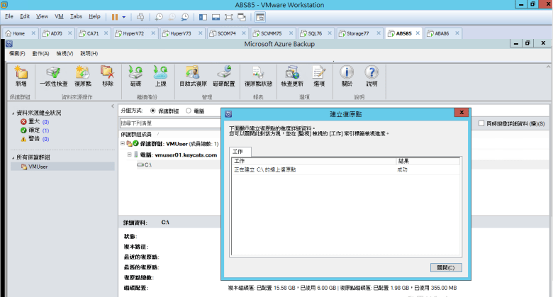 [ (測試) 立即備份 新增 上線保護 (VMUser01) ]