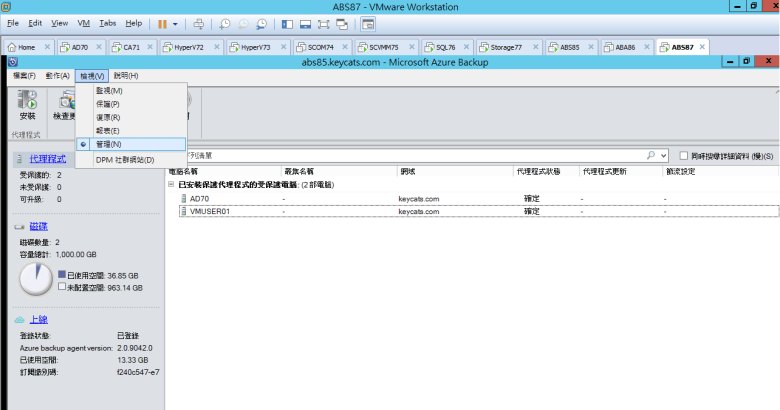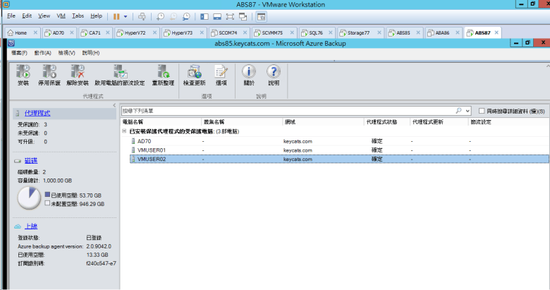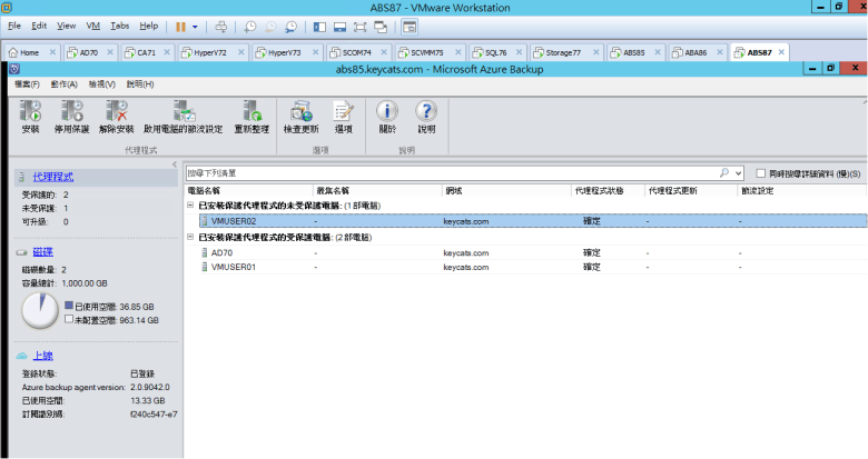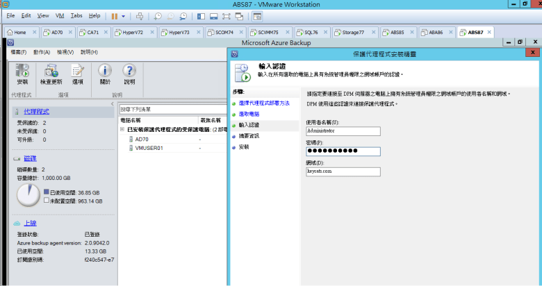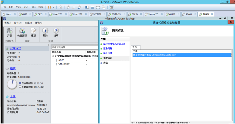[ Ps.使用 Microsoft Azure Backup 連線至 主要的 Azure Backup Server (DPM) 控制部署 VMUser02 ]