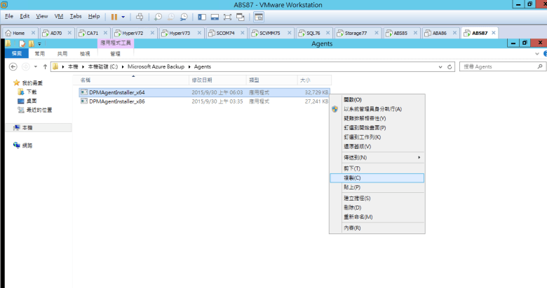 確認 DPMAgentInstaller 已複製至 VMUser02 (伺服器主機)