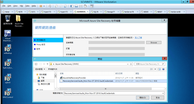 設定 System Center 2012 R2 Virtual Machine Manager (註冊 SCVMM 連接至 Microsoft Azure Site Recovery)
