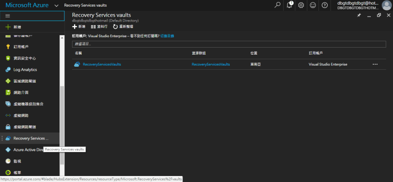 [ 新增 Azure Recovery Services vaults 服務 ]