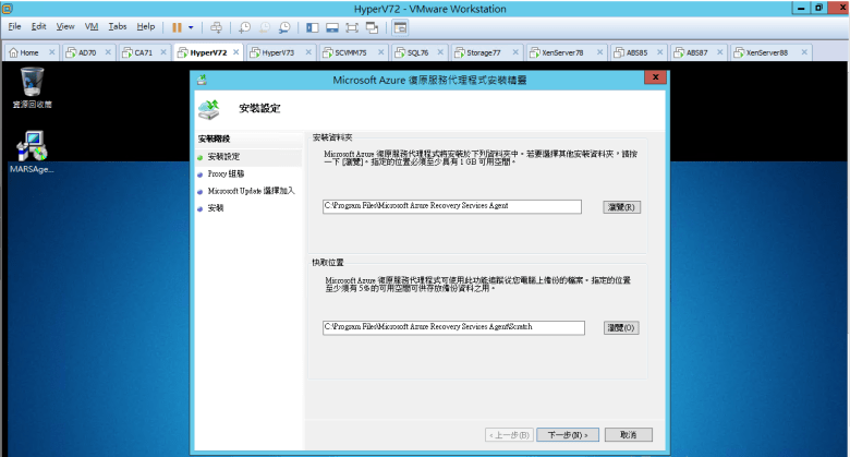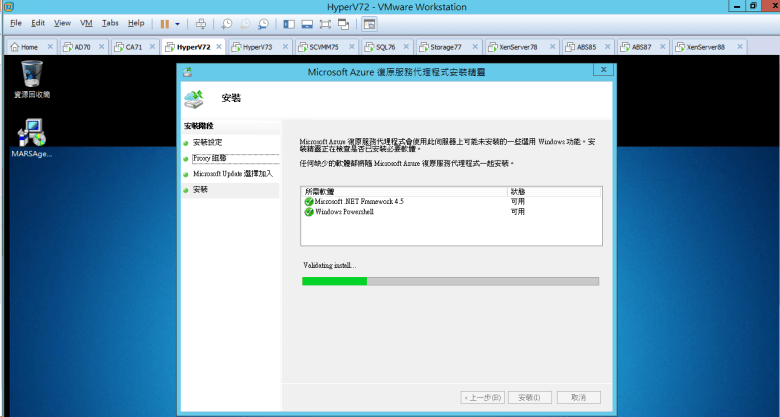 [ 安裝 Microsoft Azure Recovery Services 代理程式 (HyperV72) ]