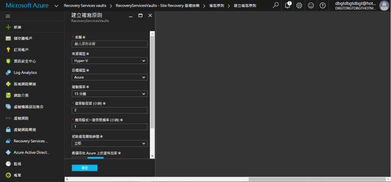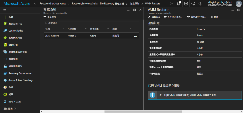 [ 新增 Microsoft Azure Site Recovery 複寫原則 (VMM Restore) ]