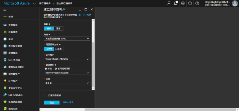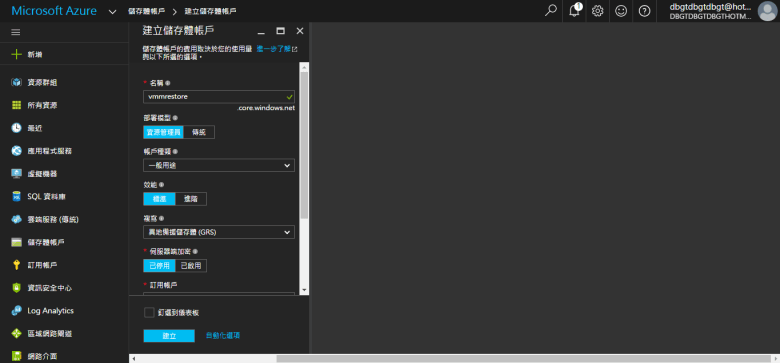 [ Ps.在此需先建立 儲存體帳戶 ]