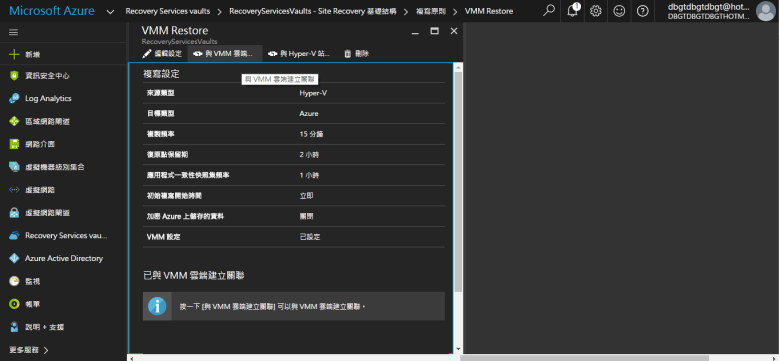 [ 建立 雲端關聯 Microsoft Azure (VMM Restore) 連接 System Center VMM (VMMRestore) ]