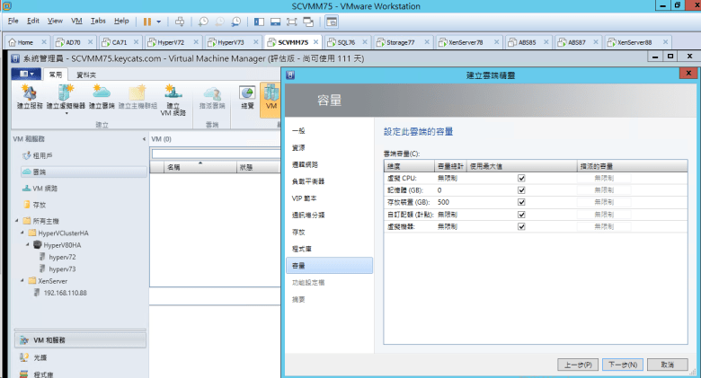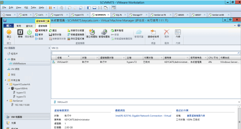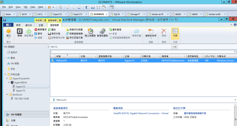 開啟 SCVMM75.keycats.com (SCVMM 主控台)