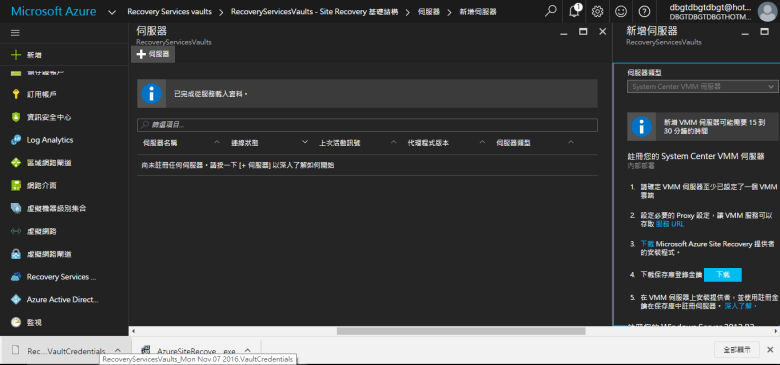 確認 RecoveryServicesVaults_Mon Nov 07 2016.VaultCredentials (已下載)