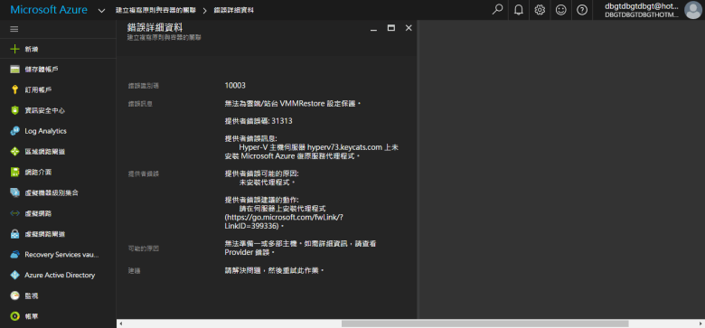 [ Ps.因 Hyper-V 主機伺服器 HyperV73.keycats.com 未安裝 復原服務代理程式 ]