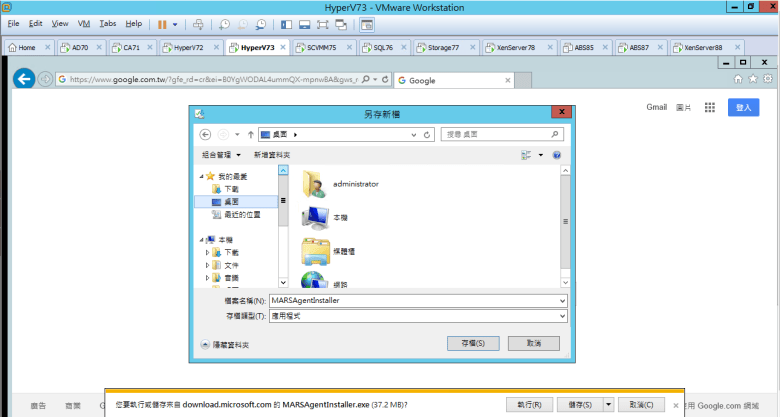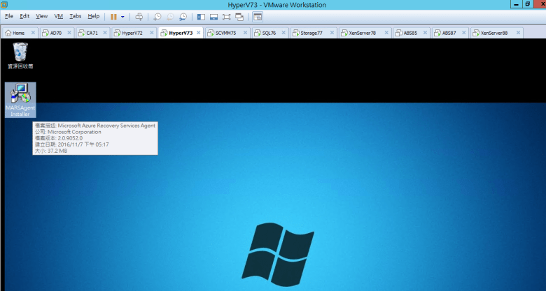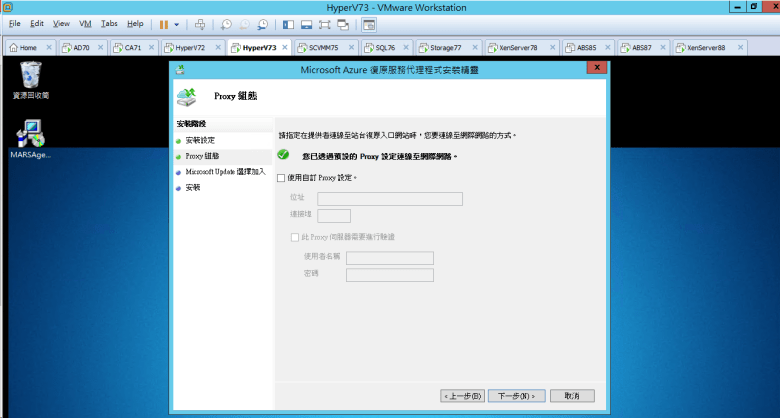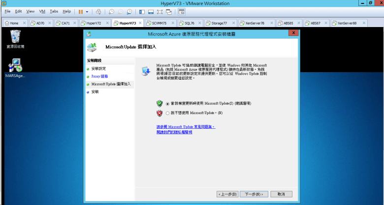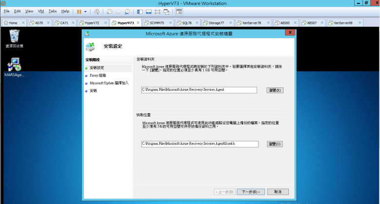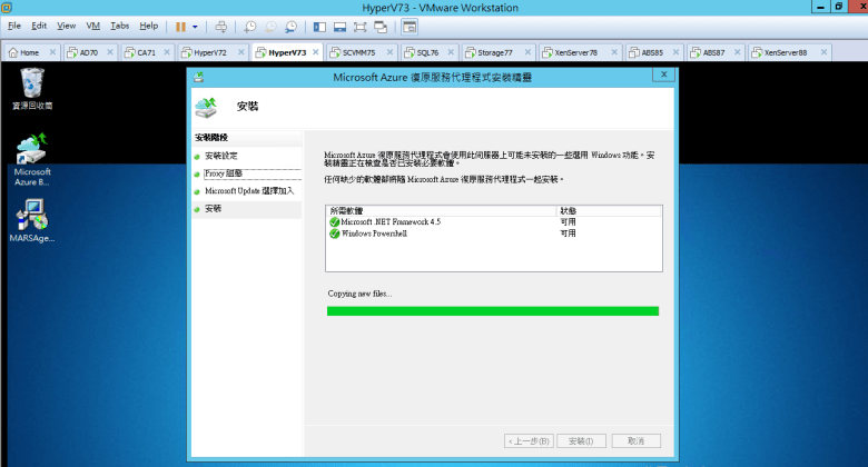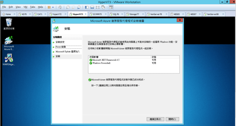 [ 安裝 Microsoft Azure 復原服務代理程式 (HyperV73) ]