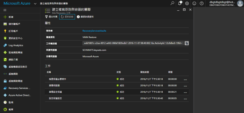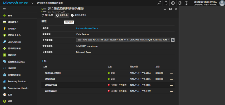 [ 重啟 建立雲端關聯 Microsoft Azure (VMM Restore) 連接 System Center VMM (VMMRestore) 修正服務 ]