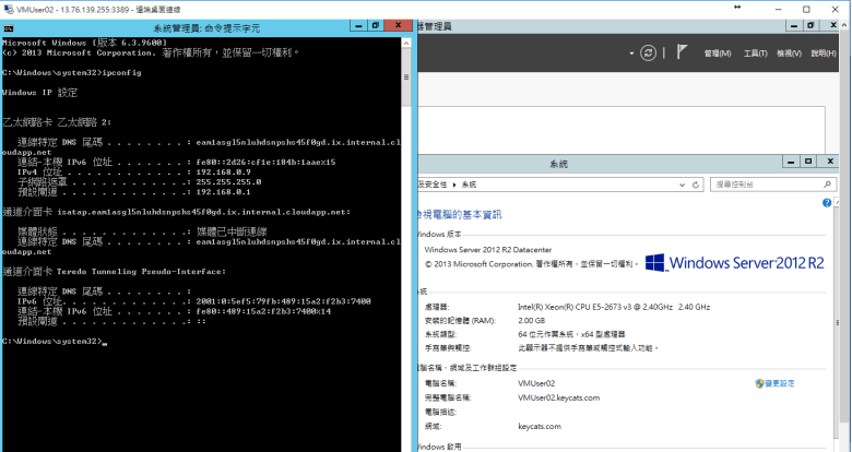 [ Ps.在此需先在 (Microsoft Azure) 上 刪除 VMUser02 虛擬主機 (後續需測試 “非計劃的容錯移轉") ]