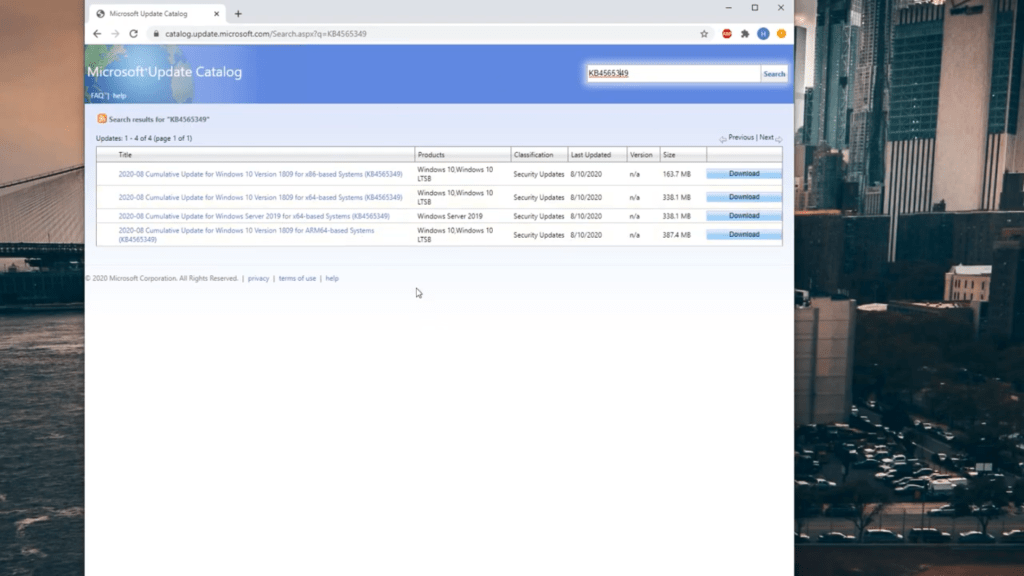 前往 搜尋 Microsoft Update catalog KB4565349 (Download)