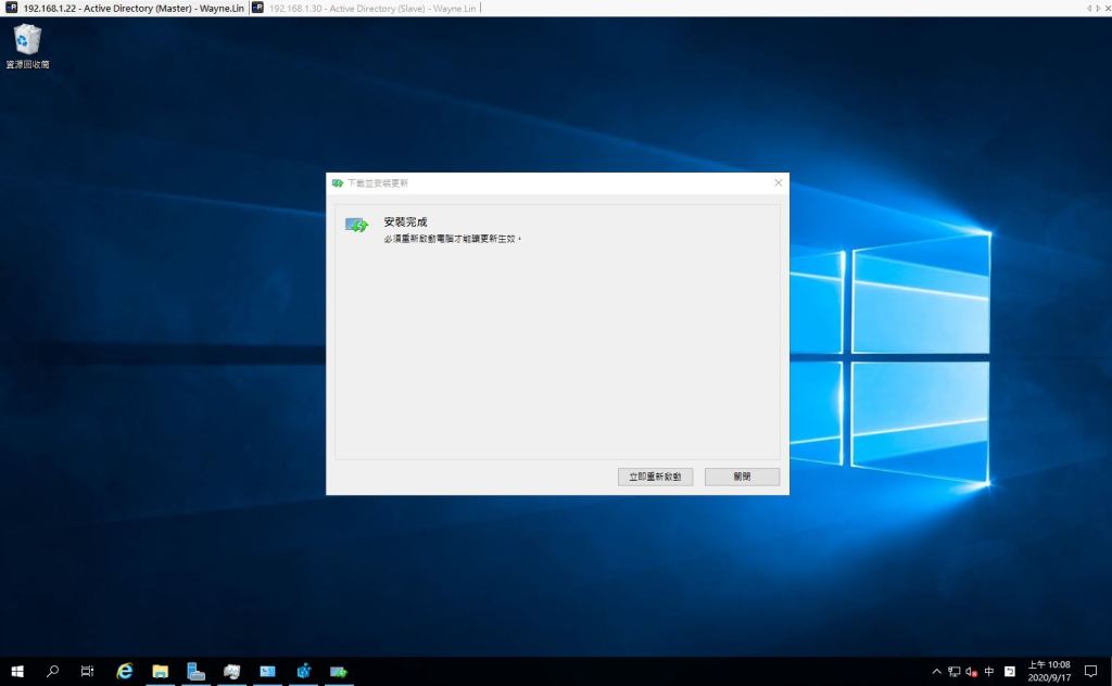 注意 更新完成後 (需要 立即重新啟動 網域控制站)