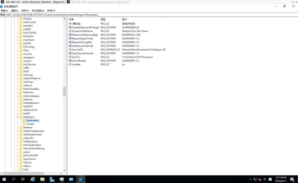 輸入 HKEY_LOCAL_MACHINE \SYSTEM\CurrentControlSet\Services\Netlogon\Parameters