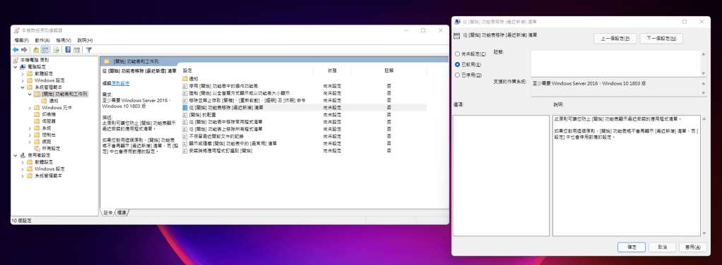 對於 移除 新版本 Windows 11【 開始 】的 『推薦項目』