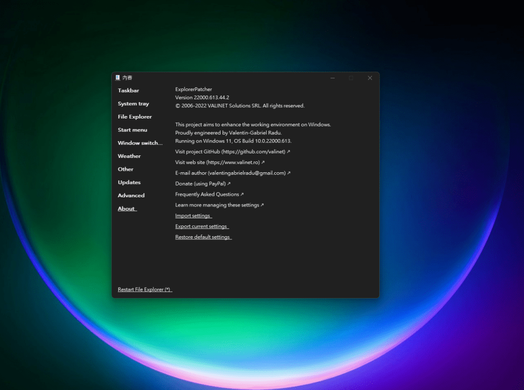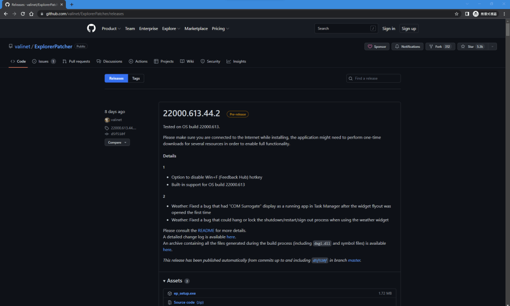 進行 參與更新 【開發 及 贊助 ExplorerPatcher 的研發階段】