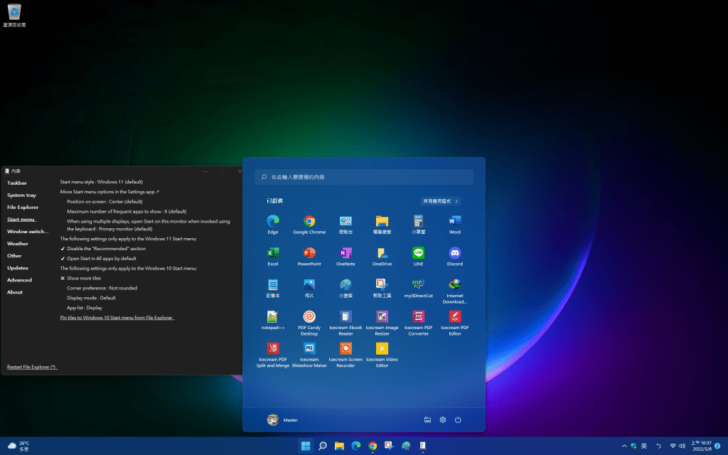(這時候 熟悉的 Windows 10 工作列 右鍵屬性已經回復)